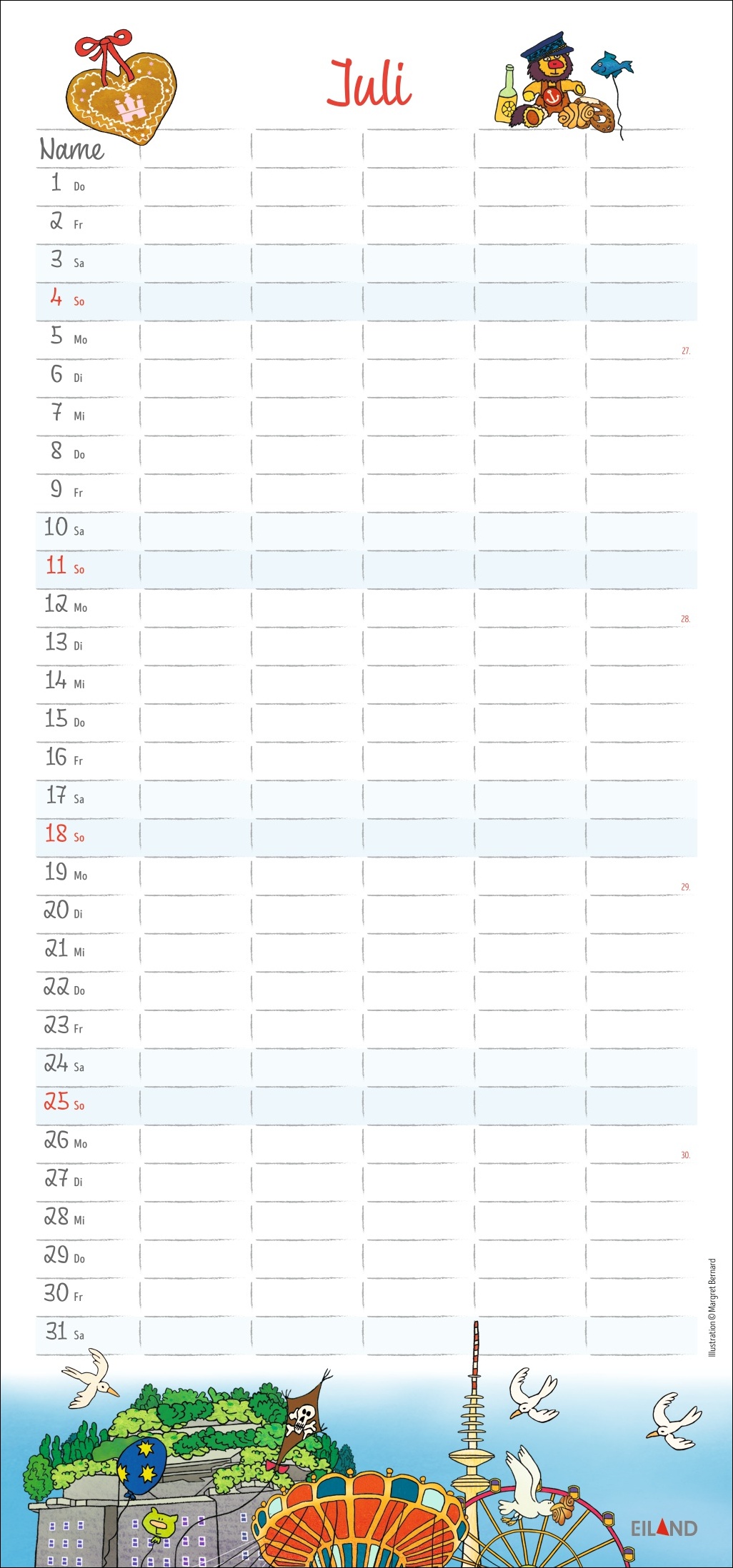 - Die bunten Illustrationen von Margret Bernard zeigen den Trubel Hamburgs und machen den Familienplaner 2027 zum Hingucker