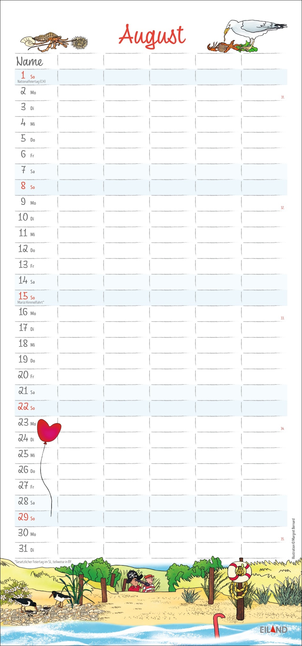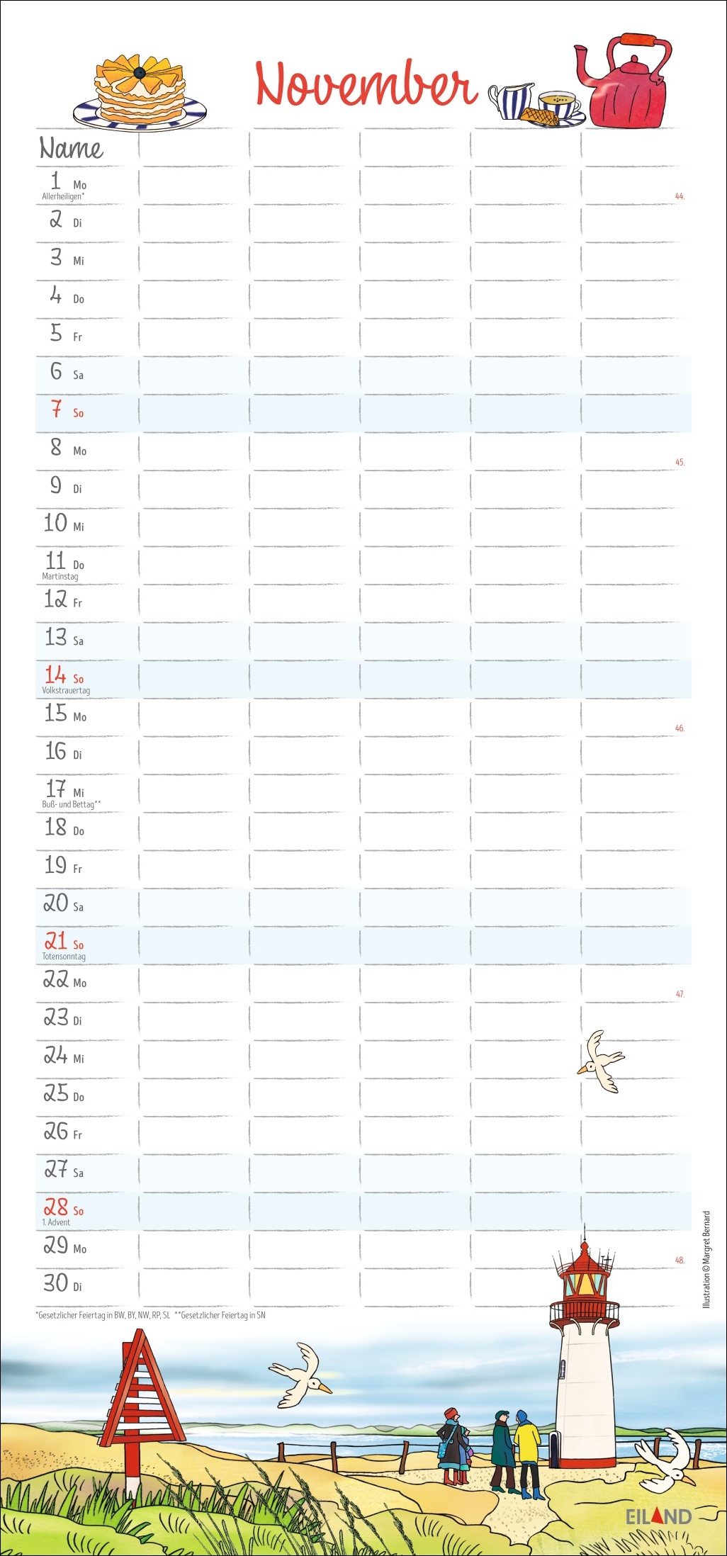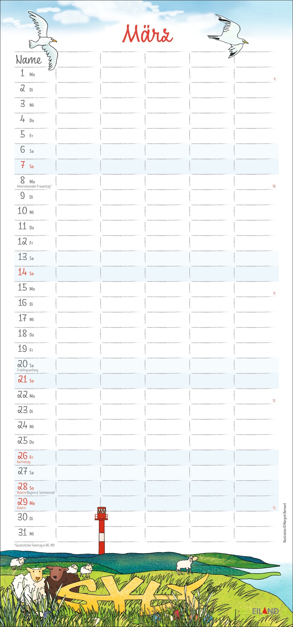• Monatskalender mit Sylt-Impressionen von Illustratorin Margret Bernard